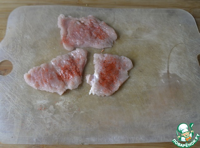 Натираем любимой приправой и маслом. У меня приправа для птицы: перец чили, перец чёрный, карри и паприка.