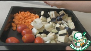 Овощи моем, чистим и нарезаем произвольными кусочками, только морковь режьте помельче, так как ей требуется больше всего времени для запекания. На помидорах я сделала надрез, чтоб не лопнули. Посолим все, посыпем любимыми специями, я брала итальянские травы, сбрызнем растительным маслом, перемешаем. Запекаем при 180 градусах примерно 40-50 минут до готовности все овощей.