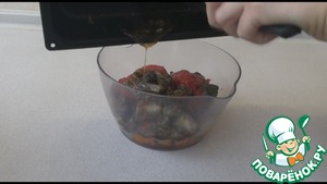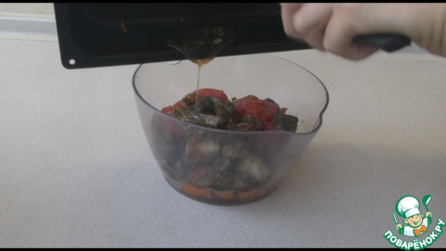 Юшечку, которая образовалась при запекании тоже добавляем в миску, она очень вкусная!