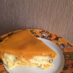 6)Чтобы при разрезании запеканки у нас получился красивый рисунок, провести деревянной шпажкой от стенок формы к центру несколько "лучиков". Поставить запеканку в разогретую до 170 град. духовку минут на 40-50 минут