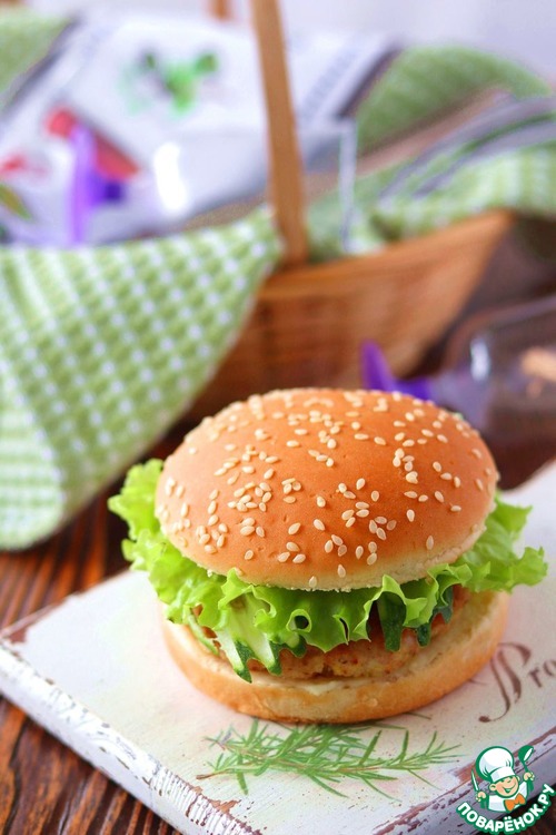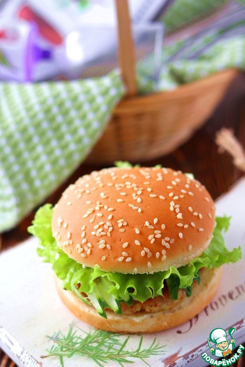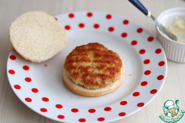Рецепт «Гамбургер с индейкой и чесночным сыром»: