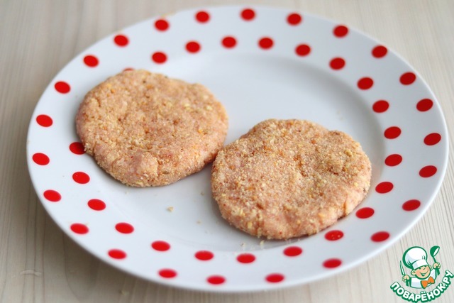 Мокрыми руками сформовать котлеты круглой формы. По желанию можно запанировать в панировочных сухарях.