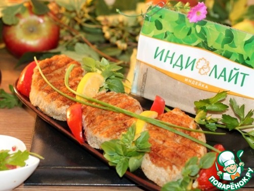 Вкусные, пряные котлеты из голени индейки от ТМ Индилайт с овощами и приготовленные на гриле.