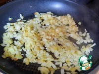 Включить духовку на 200 градусов. Растопить 25 грамм сливочного масла, обжарить лук, чеснок и имбирь. |
