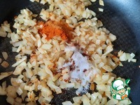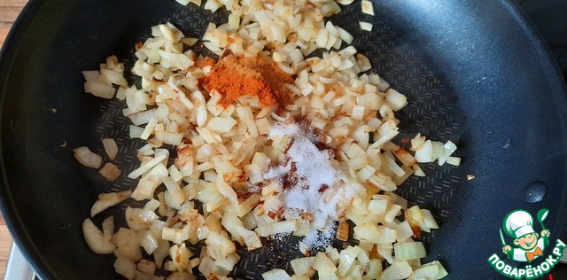 Добавить сладкую паприку, перец кайен, соль и корицу и перемешать. |