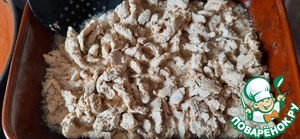 В это время духовка нагрелась. Мясо положить в форму, желательно большую, чтобы получился невысокий слой. Готовить в духовке 20 минут, 1-2 раза перемешать. |