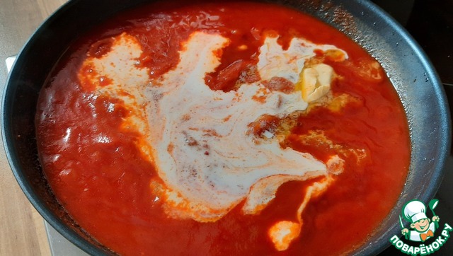 Влить сливки, добавить 1 ст. ложку мёда и 25 грамм сливочного масла, довести до кипения. |