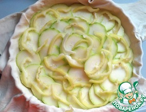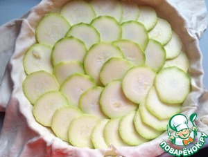 Кабачок помыть, очистить от кожуры, нарезать кружочками. Разложить в форме.