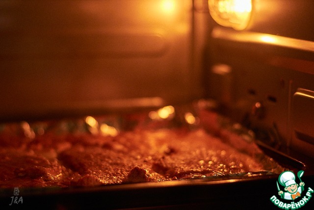 Поставить разогревать духовку до 230С или разжечь мангал.