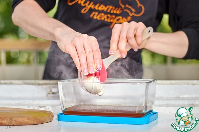 Вылить в емкость для маринования.