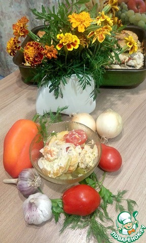 • Через 20 минут равномерно распределяем соус по поверхности и оставляем запекаться еще на 20-30 минут. Ориентируйтесь по вашей духовке и по готовности овощей.