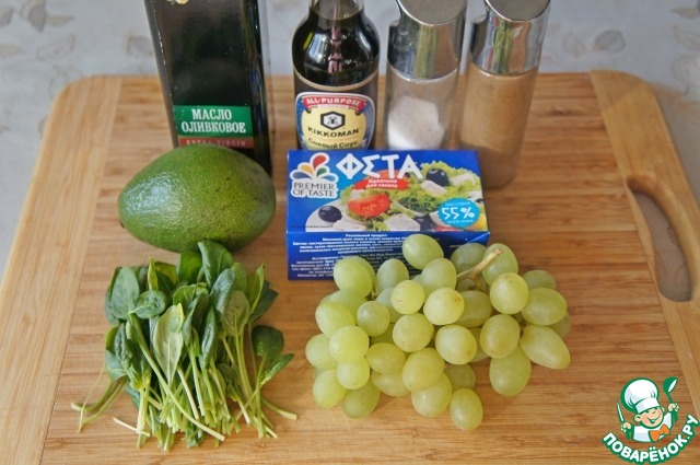 Ингредиенты для «Салат из авокадо с виноградом и шпинатом»: