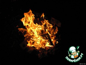 Даём мясу постоять не в тёплом месте (у меня стояло просто на окне, а летом лучше в холодильнике) минимум 3 часа. У нас стояло с 10 утра и до 7 вечера). И идём в мороз и ветер жарить наш шашлык. На этот раз мы далеко не пошли, развели костёр практически возле дома. Огонь это всегда красиво, а особенно в темноте. Полюбуйтесь!!!
