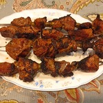 • Шашлык готов! Куда делся третий шампур, я уж и не знаю ;-). В общем, теперь рассказываю, что здесь и к чему. Хотя многие, может, и поняли уже. Всё легко и просто: коньяк смягчает, а яйца не дают выходить соку, так как обволакивают мясо. И это действительно было так!!! При этом ни коньяк, ни яйца в готовом шашлыке абсолютно не чувствуются. ПРИЯТНОГО АППЕТИТА!!!