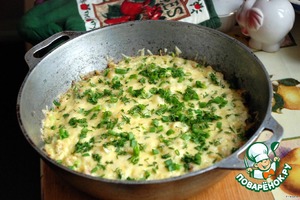 Теперь ставим сковородку в духовочку и выпекаем пока сырок не подрумянится (буквально 15 мин. )