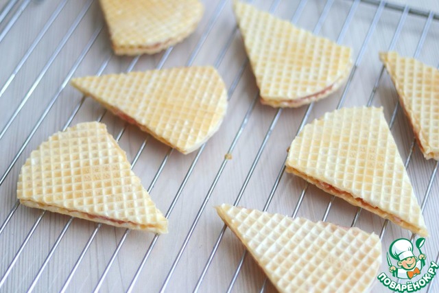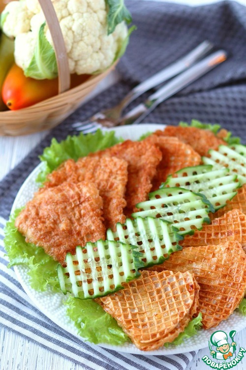 К вафельным треугольничкам подать салаты из свежих овощей или гарнировать свежими овощами.
