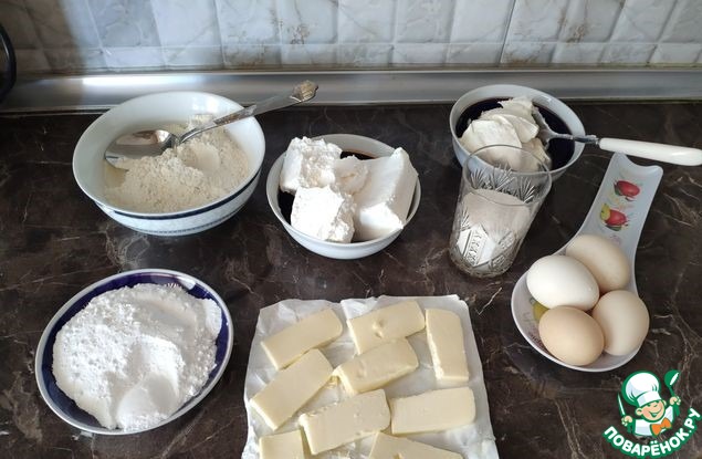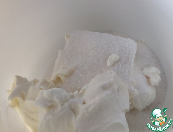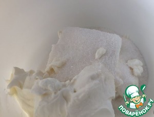 5. Переходим к начинке. Для этого надо хорошенько взбить сметану, сахар, ваниль и творог до однородной массы.