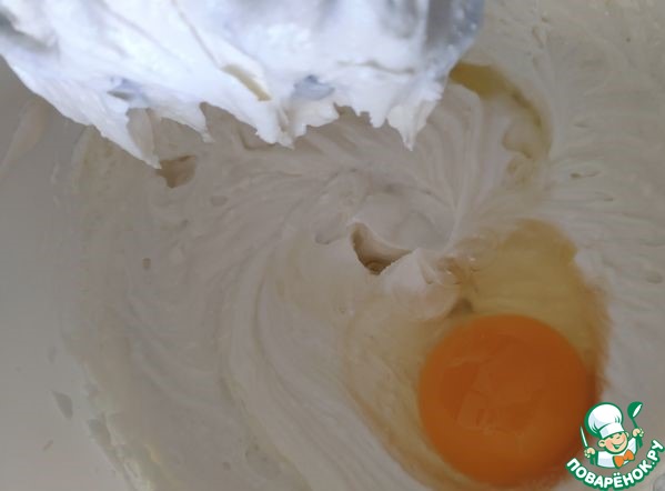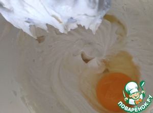 6. Добавляем к получившейся массе по-отдельности яйца и все взбиваем миксером - в нашем случае 2 целых яйца и 2 белка от яиц, которых мы использовали для теста.