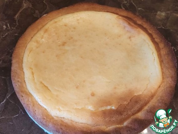 7. Достаем тесто из холодильника и выкладываем в форму. Сверху добавляем начинку и отправляем в заранее разогретую до 180 градусов духовку. Учтите, что начинка будет подниматься и поэтому бортики теста должны быть выше творожной массы.