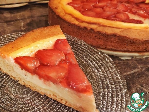 А вот и наш нежный и вкусный творожный пирог "Клубничная корзинка". Приятного аппетита!