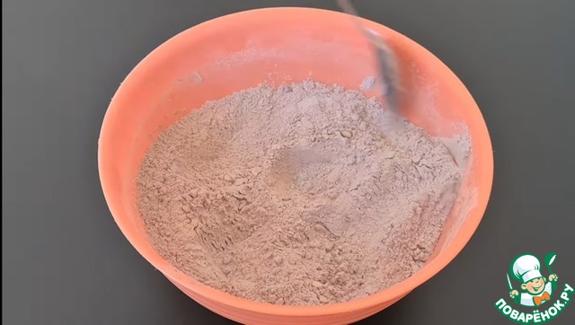 Для начало приготовим сухие смеси - мука, какао порошок и разрыхлитель все смешать