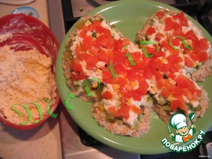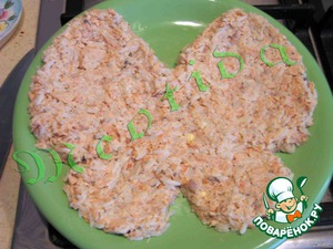сыр (с чесночком) смешиваем с майонезом и покрываем нашу бабочку сырно-майонезной смесью -