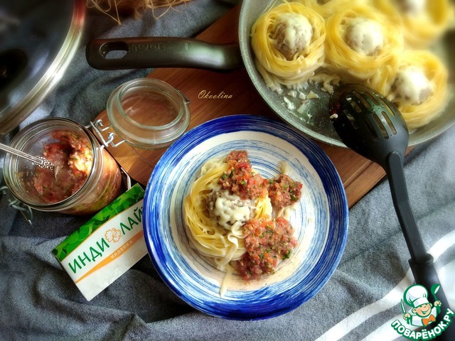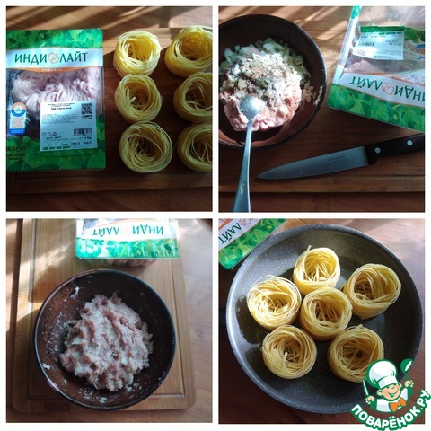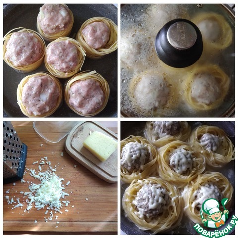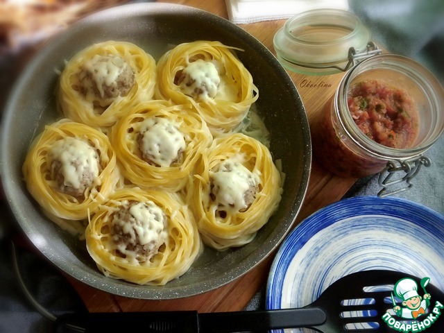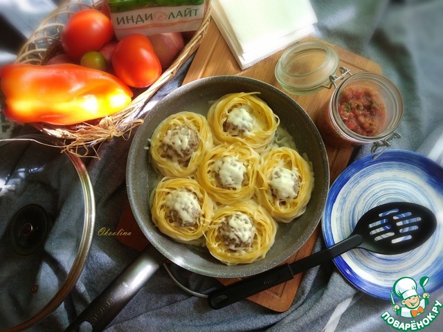 Рецепт «Гнёзда с фаршем и живым соусом»:
