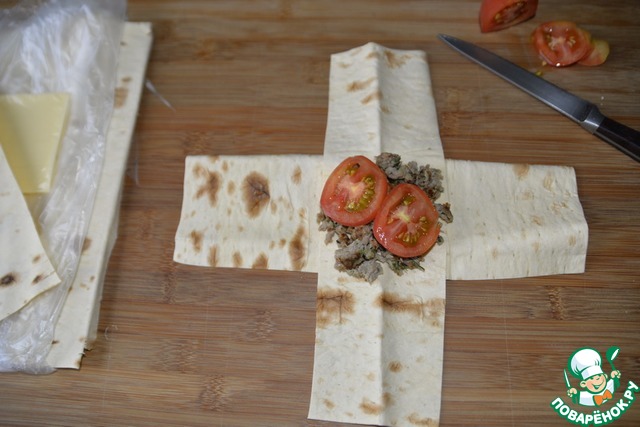 Рецепт «Конвертики из лаваша с индейкой и сыром»: