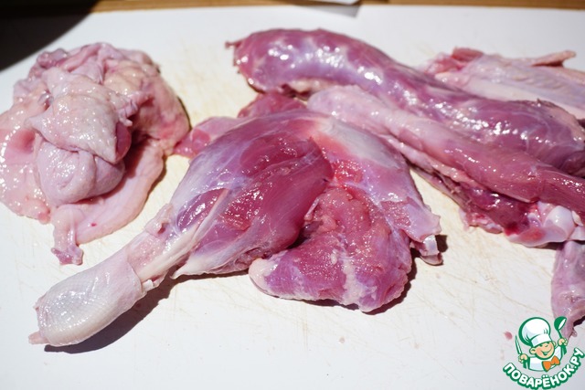 Шею (без кожи) и каркас заливаем холодной водой, подсаливаем, добавляем лавровый лист, луковицу и душистый перец. Ставим на медленный огонь и варим БЕЗ крышки не менее часа. Можно и 1,5. Я варю всегда бульон без крышки, чтобы выпаривалась жидкость и бульон вышел более насыщенным. Бульон можно приготовить заранее. Можно взять и куриный бульон.