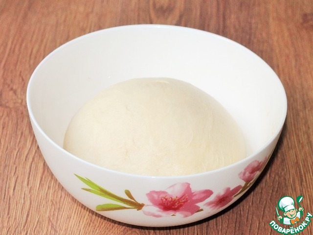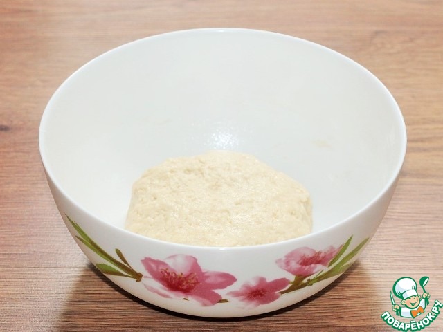 5. Замешиваем тесто. Смазываем тесто и миску растительным маслом и закрываем пленкой. Ставим миску в теплое место для подхода теста в 2,5 раза.