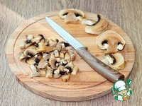 9. Мелко нарезаем грибы и обжариваем на чесночном масле с добавлением сливочного (2 ст. л.).