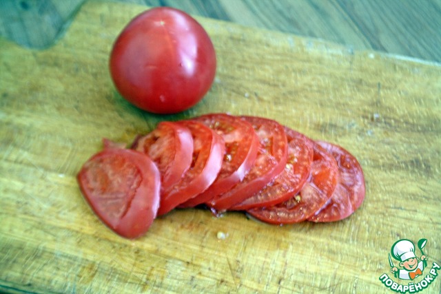 Помидоры черри разрезаем пополам, обычные нарезаем кружочками.