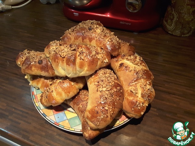 Рецепт «Рогалики с вареной сгущенкой и орехами»: