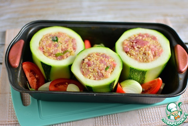 Рецепт «Кабачки, фаршированные бараниной с пшеном»: