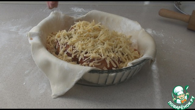 Предлагаю очень вкусный и быстрый рецепт пирога из слоеного теста с колбасками и сыром.