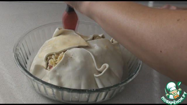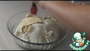 Сверху смажем яйцом и отправляем в разогретую до 200-220 градусов духовку на 20-25 минут.