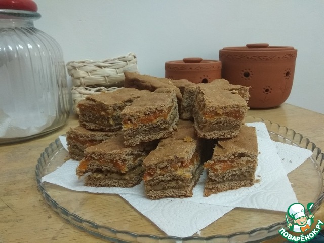 Рецепт бездрожжевого пирога с орехами и курагой. Родом этот пирог из Дагестана. Пирог называют ботлихским — по названию местности, где его готовят. Пирог очень лёгкий в приготовлении, долго хранится, при желании его можно заморозить. Форму я использую 25 см, можно использовать форму большего диаметра.