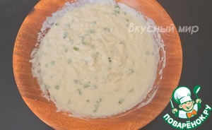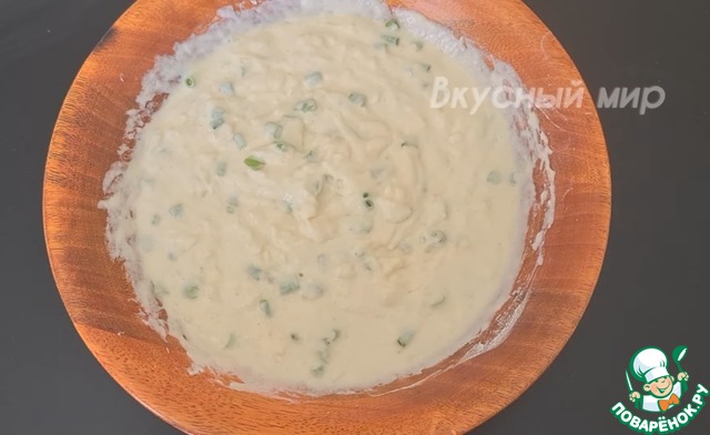 Кефир должен быть тёплым. Сыр берите любой, у меня моцарелла, в идеале твёрдый. Все ингредиенты смешать по очерёдности, тесто оставить отдохнуть на 5 минут.