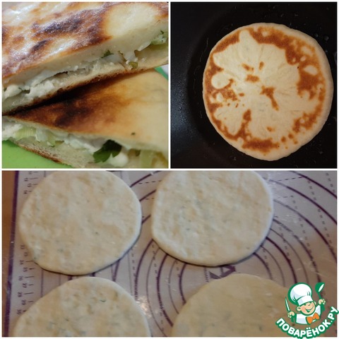 Рецепт «Жареные лепешки с луком и брынзой»: