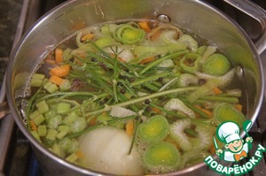 Влить бульон, отваривать при слабом кипении около 10-15 минут.