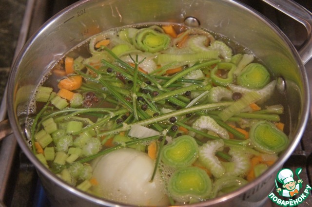 Овощной бульон можно приготовить заранее, например накануне, и держать в холодильнике.