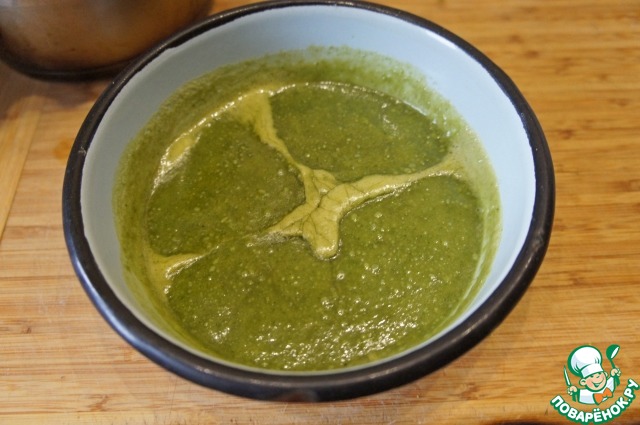 При желании можно процедить обе массы через мелкое сито, но я этого не делала. Лучше тщательно перемолоть листья в блендере. Их наличие в мороженом не ощущается, но зато придает ему пикантность.