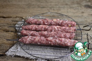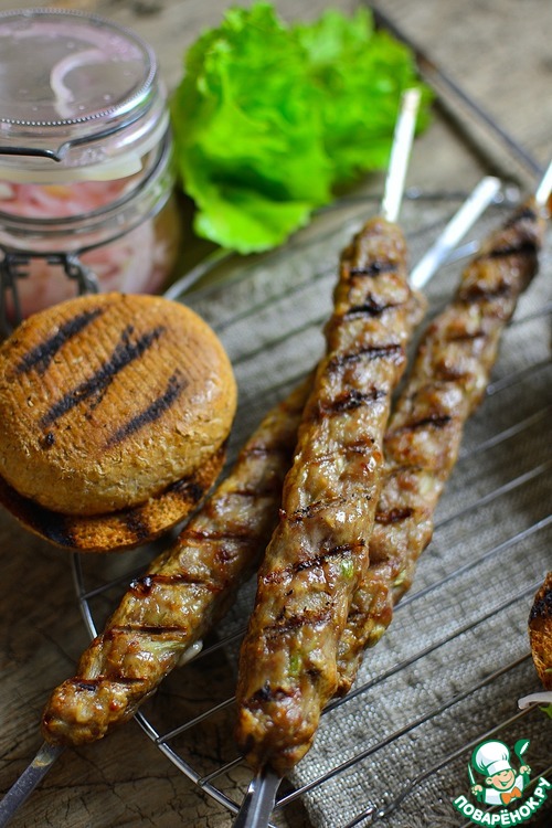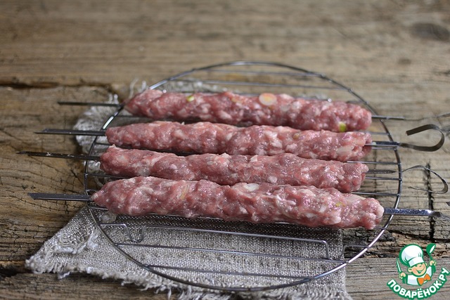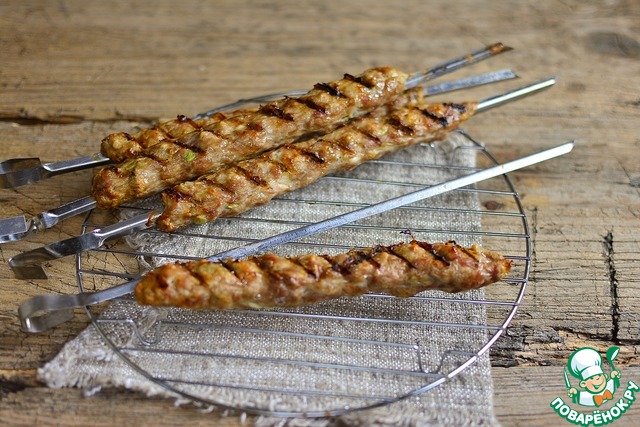 Кебабы жарить на умеренно жарких углях до готовности, минут 10, не пересушить! Можно приготовить дома в духовке при температуре 200 градусов.