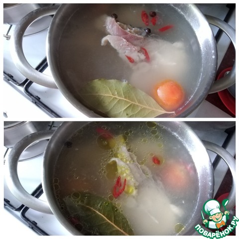 Ставим кастрюлю с водой и промытым пшеном на огонь, доводим до кипения и снимаем накипь от пшена. Выкладываем лук, картофель, морковь и петрушку в кастрюлю. Варим до готовности пшена и овощей. Вынимаем из кастрюли луковицу и петрушку, солим суп, закладываем рыбу, перец душистый, лавровый лист и порезанный тонко стручок перца-чили, убрав из него зёрна и помидоры. Если будут есть дети, то чили не кладите.