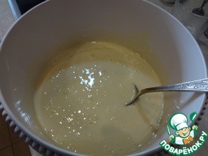 Взбиваем яйца с сахаром. Потом примешиваем к ним растительное масло, кефир, муку (просеянную), ванилин и разрыхлитель