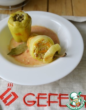 Рецепт «Перец, фаршированный овощами и копчёными колбасками»: