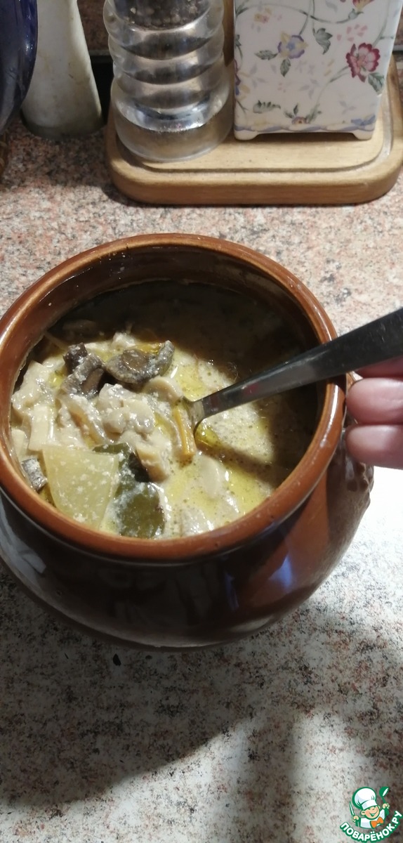Осень - пора домашних, сытных, уютных блюд. И блюда в горшочках - прекрасный выбор для осенних прохладных дней. Хочу предложить вам рецепт грибного супа в горшочках, приготовленного не на бульоне, не на воде, а на топлёном молоке. У супа очень насыщенный, сливочный вкус.
