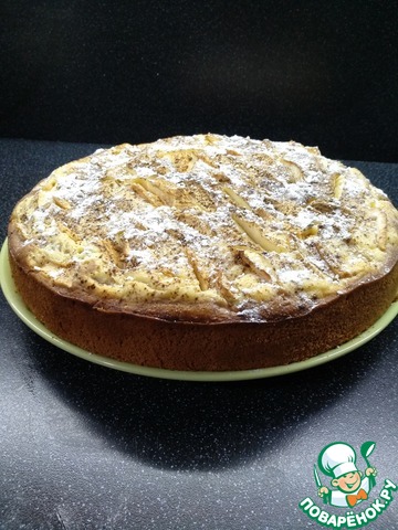Наполовину остывший пирог посыпать сверху сахарной пудрой. Если пирог посыпать пудрой сразу, она намокнет от пара. А если посыпать совсем остыший пирог, пудра будет осыпаться.