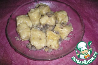 Когда ньокки будут готовы, переложим их в соус и хорошо перемешаем. Если соус будет слишком густой, добавим немного воды от ньокки.