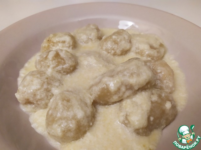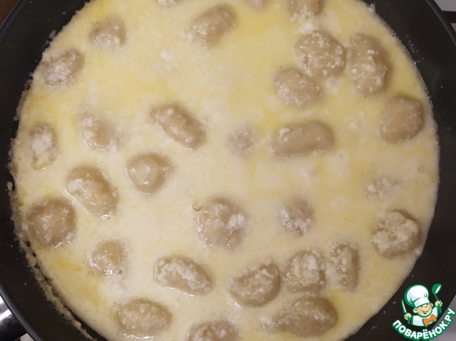 Когда ньокки будут готовы, возьмём от них воду и разбавим соус до соус до более жидкого состояния.